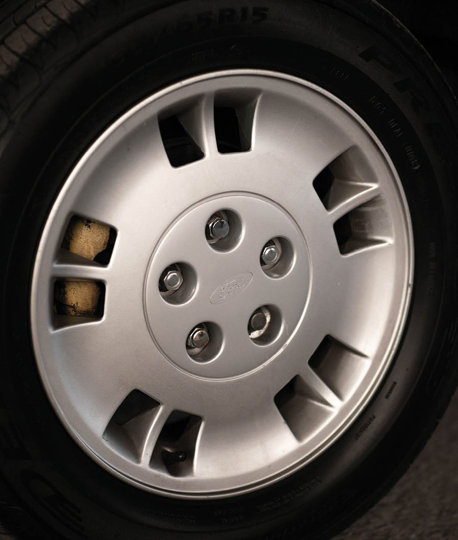 15-calowe koła po zabiegach detailingowych wyglądają jak nowe. Na wszelki wypadek właściciel ma jeszcze zapasowy komplet.