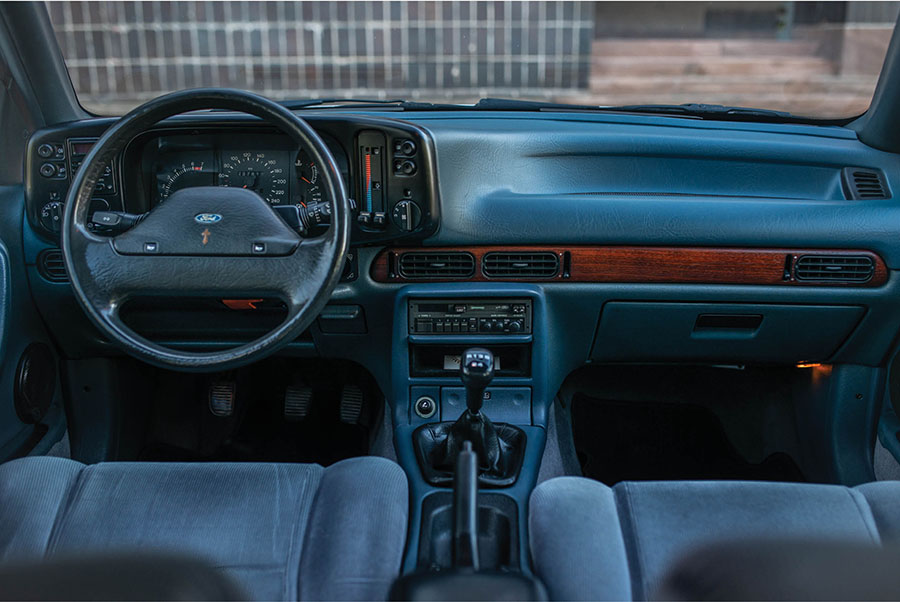 Wnętrze imponuje do dziś przestronnością, zwłaszcza na tylnej kanapie – ilością miejsca bije tam na głowę swoich rówieśników. Wygodne siedzenia obito welurową tapicerką, dobrą formę trzyma przejrzyście zaprojektowana deska rozdzielcza. Standard wyposażenia wersji Ghia obejmuje m.in. centralny zamek, elektrycznie sterowane szyby i lusterka, komputer pokładowy oraz częściowo elektryczną regulację ustawień przednich foteli. Właściciel potwierdza zalety samochodu, w tym bardzo dobre wyciszenie wnętrza i przede wszystkim komfort, który zapewnia podczas jazdy. „Scorpio to taki typowy tapczan. Na trasie zachowuje się idealnie. Płynie i miękko tłumi nierówności. Może układ kierowniczy nie jest taki, jak w BMW, ale daje dobre wyczucie. To nie jest w końcu sportowe auto” – mówi. Pod maską jego egzemplarza pracuje stare dobre Pinto 2.0 OHC o mocy 115 KM. „Kiedyś takie 2.0 to było coś, dziś jego osiągi nie robią już dużego wrażenia, ale na pewno nie jest mułem na drodze. Mam jeszcze kilka innych samochodów, ale gdy wsiadam do Scorpio, zawsze się cieszę” – podsumowuje.