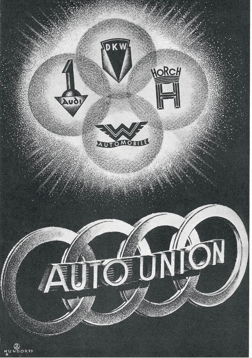 Dla podkreślenia jedności czterech założycielskich marek nowa grupa przyjęła logo z czterema zazębiającymi się pierścieniami. Każdy z nich symbolizował jedną z firm: DKW – producenta motocykli i małych samochodów, Wanderera – specjalistę od aut klasy średniej, Audi – markę klasy premium, oraz Horcha – producenta luksusowych limuzyn. Choć pod wspólnym szyldem, marki zachowały swoje indywidualne tożsamości i rynkowe pozycje, co czyniło z Auto Union silnego i różnorodnego gracza na rynku.