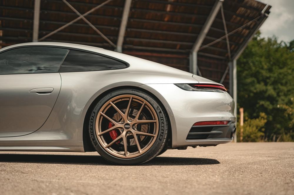 Przełom nastąpił w 1972 roku, kiedy BBS zaprezentowało innowacyjną, trzyczęściową felgę wyścigową. Była to konstrukcja modułowa, składająca się z kutej gwiazdy (środka) oraz dwóch rantów – wewnętrznego i zewnętrznego. Taki układ pozwalał na niespotykaną wcześniej elastyczność w doborze szerokości i odsadzenia koła, a przede wszystkim drastycznie redukował masę nieresorowaną. Wynalazek ten błyskawicznie zdobył uznanie w świecie wyścigów, a felgi z charakterystycznym wzorem "cross-spoke" (koszykowym) zaczęły dominować na torach. Sukcesy w serii ETCC oraz legendarne występy w barwach BMW i Porsche sprawiły, że BBS stało się marką pożądaną nie tylko przez profesjonalnych kierowców, ale i cywilnych użytkowników, którzy marzyli o przeniesieniu technologii z toru na publiczne drogi.