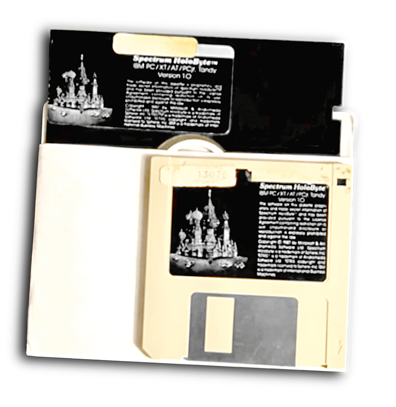 Dyskietki z grą sprzedawaną przez firmę Spectrum. Początkowo firma chciała sprzedawać grę w czerwonych pudełkach opisanych cyrylicą, z symbolem sierpa i młota.