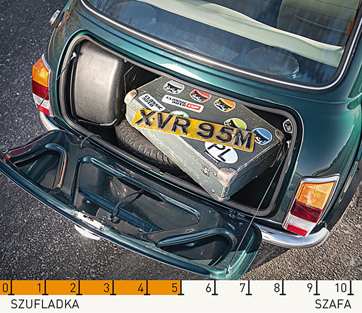 Mini ma 3 metry długości, nie ma co oczekiwać cudów. I cudów nie ma, chociaż da się włożyć symboliczną walizkę i zatrzasnąć klapę.