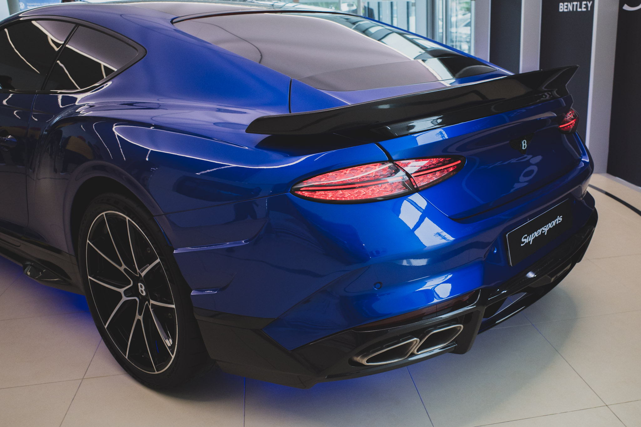 Równie konsekwentnie potraktowano aerodynamikę. Supersports otrzymał najbardziej agresywny pakiet aerodynamiczny, jaki kiedykolwiek trafił do drogowego Bentleya. Nowy splitter, dyfuzor, stałe tylne skrzydło i liczne elementy z karbonu generują ponad 300 kg docisku więcej niż Continental GT Speed, zachowując jednocześnie równowagę aerodynamiczną przy wysokich prędkościach. Na torze, w połączeniu z opcjonalnymi oponami Pirelli Trofeo RS, auto osiąga przeciążenia boczne sięgające 1,3 g.
