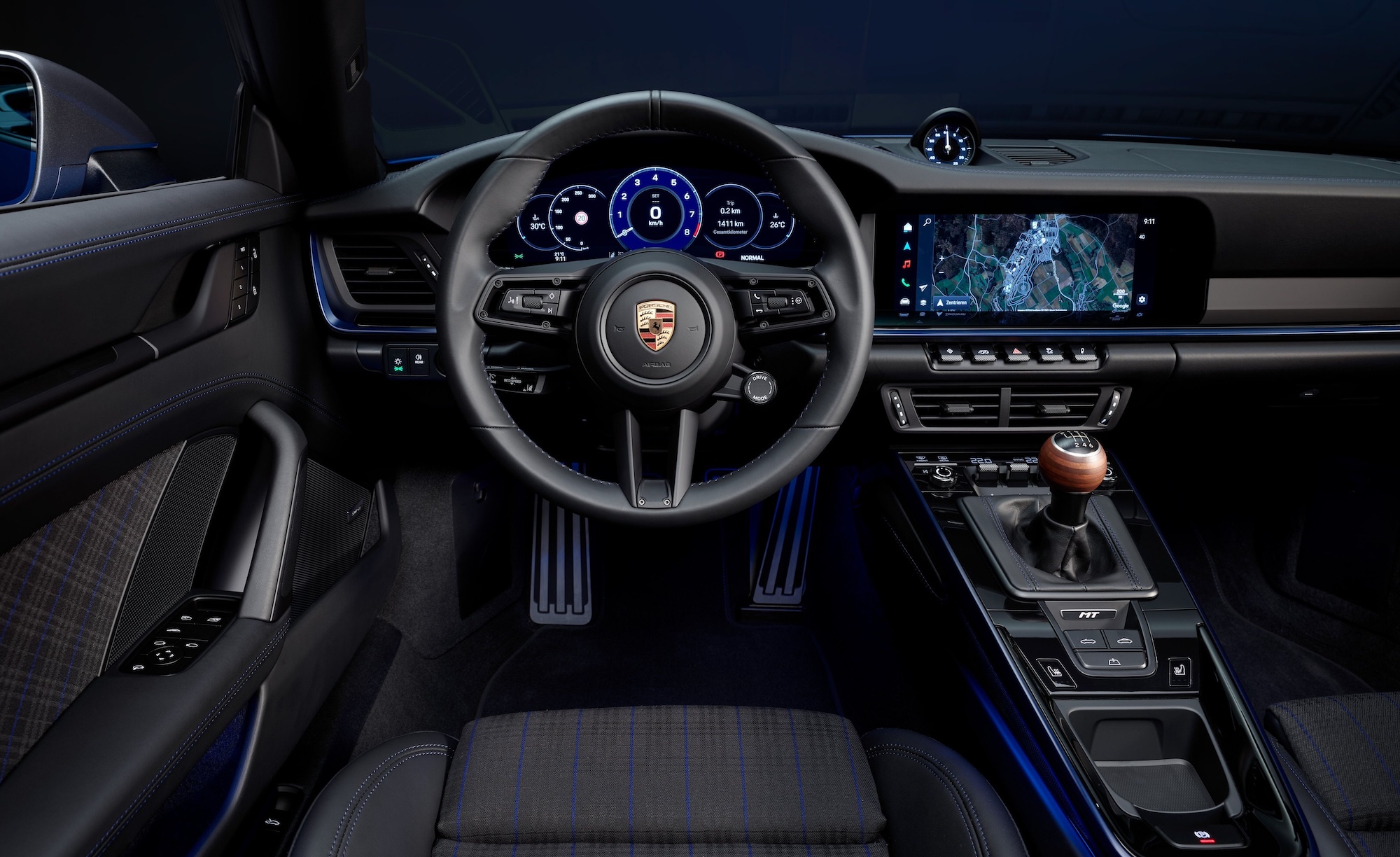 Wnętrze również zostało zaktualizowane w stosunku do poprzednika. Wraz z pakietem Sport Chrono na desce rozdzielczej pojawił się stoper, a uwagę na konsoli środkowej zwraca nowa, skrócona gałka dźwigni zmiany biegów z laminowanego drewna orzechowego. Standardem jest obszyta skórą i podgrzewana kierownica sportowa GT i sportowe fotele z 4-kierunkową regulacją elektryczną i środkowymi panelami z materiału Sport-Tex o charakterystycznym i zarezerwowanym wyłącznie dla Carrery T kraciastym wzorze. W ramach opcji dostępne są siedzenia adaptacyjne z 18-kierunkową regulacją lub lekkie fotele kubełkowe.
