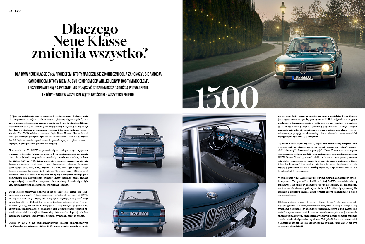 Okładkowy materiał marcowego CA poświęcamy Drugiej Rewolucji BMW – historii Neue Klasse od jej narodzin, przez wpływ na całą markę i rynek, aż po najnowszą odsłonę tej idei. Historii nie tylko o samochodach, lecz także o filozofii projektowania, odwadze decyzyjnej i umiejętności czytania przyszłości. Materiał powstał we współpracy z BMW i jest próbą spojrzenia na Neue Klasse nie jako hasło marketingowe, lecz jako ciągłość myślenia o mobilności, technologii i emocjach.