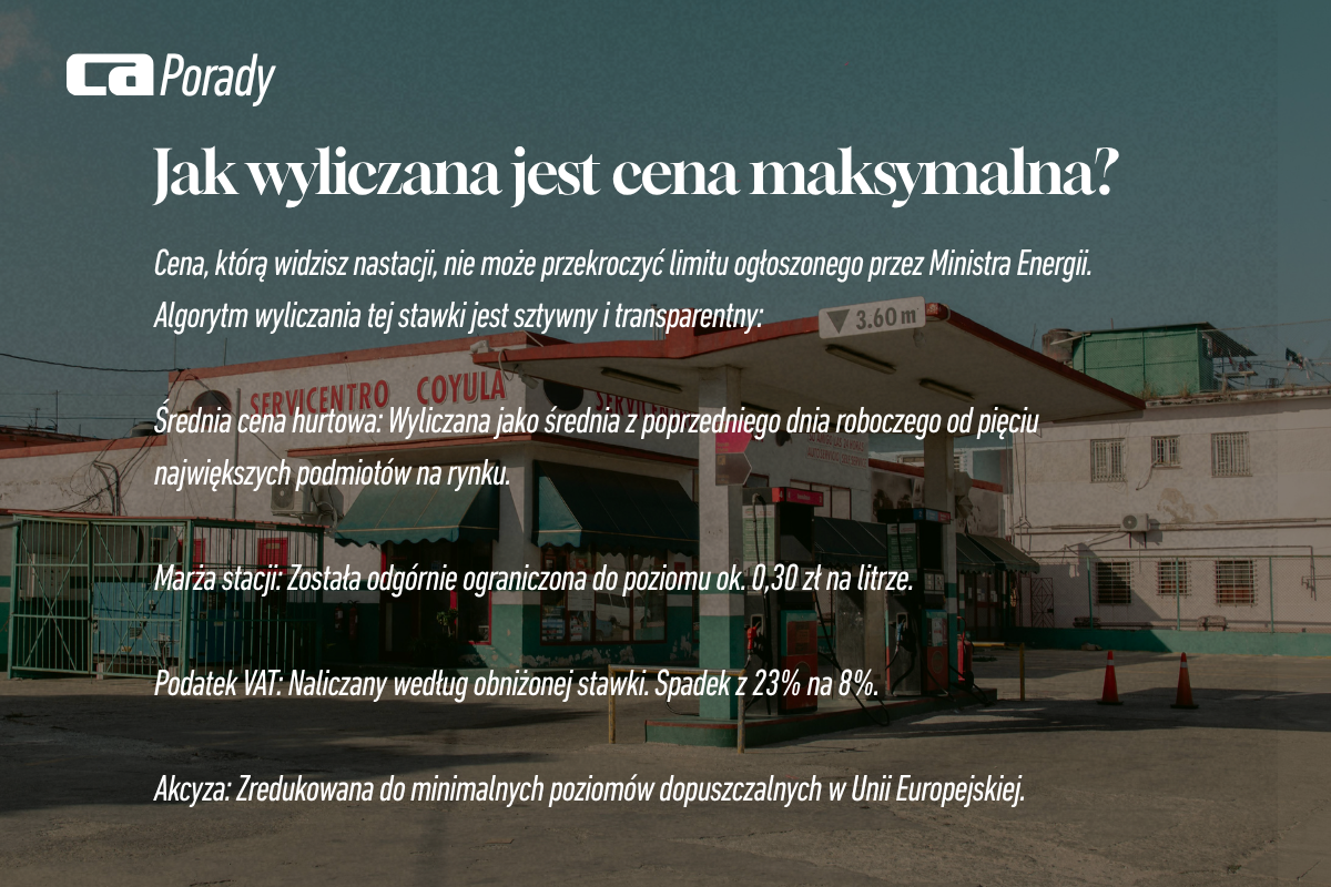 Głównym założeniem regulacji jest nadanie Ministrowi Energii uprawnień do wyznaczania maksymalnej ceny detalicznej benzyny oraz oleju napędowego, której właściciele stacji pod groźbą surowych kar finansowych nie mogą przekroczyć w codziennej sprzedaży. Sposób ustalania tych limitów opiera się na precyzyjnej formule matematycznej, co ma gwarantować, że ceny nie są ustalane w sposób arbitralny. Algorytm bierze pod uwagę aktualną średnią cenę hurtową paliw na rynku krajowym, do której doliczane są niezbędne składowe, takie jak akcyza oraz opłata paliwowa. Istotnym elementem tej zmiany jest odgórne ograniczenie marży sprzedażowej dla właścicieli stacji do poziomu około trzydziestu groszy na litrze. Dzięki takiemu rozwiązaniu państwo przejmuje kontrolę nad ostatecznym kosztem tankowania, pilnując, by marże pośredników nie były zawyżane w okresie kryzysu.