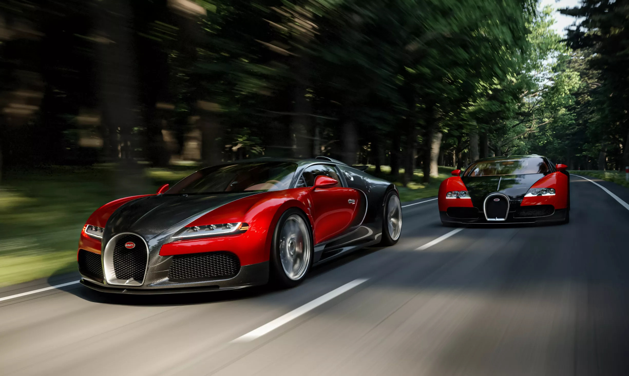 Stylistycznie samochód jest natychmiast rozpoznawalny, choć zmieniono wiele elementów. Charakterystyczna podkowiasta osłona chłodnicy jest teraz szersza, trójwymiarowa i frezowana z jednego bloku aluminium. Powiększone wloty powietrza dyskretnie zaspokajają apetyt potężniejszego silnika. Dwukolorowe malowanie czerwono‑czarne nawiązuje bezpośrednio do koncepcyjnego Veyrona z 2003 roku. Współczesna technologia lakiernicza dodaje jednak głębi: czerwień położono na srebrnej bazie, a czerń to odsłonięte włókno węglowe z przyciemnianym lakierem bezbarwnym. Całość uzupełniają większe felgi i nowoczesne opony Michelin.