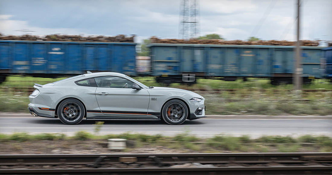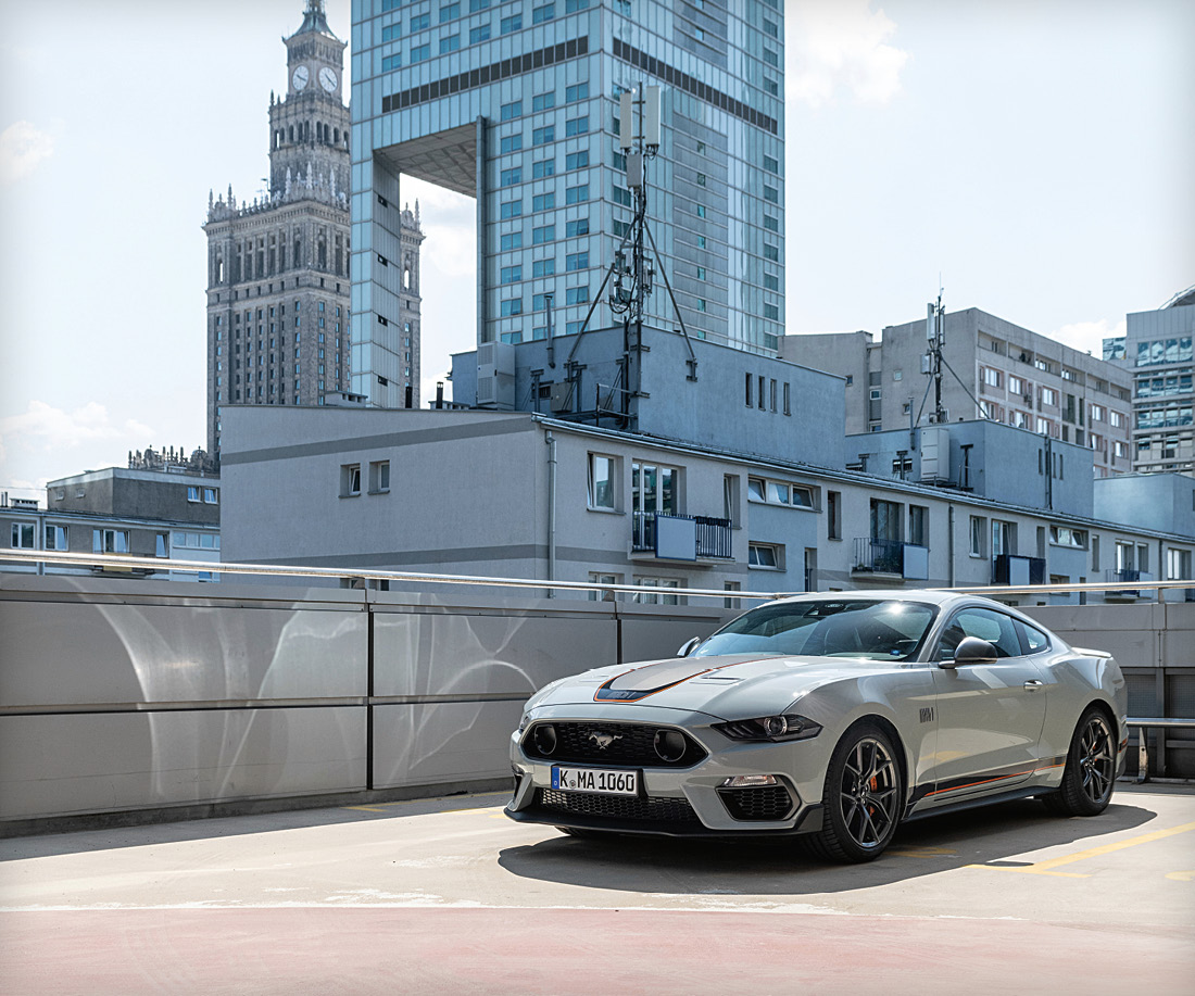 Dodatkowo Ford za wszelką cenę chciał udowodnić, że ma pierwszeństwo w produkcji najmocniejszych automobilowych „muskułów”, dlatego też mocno zaangażował się w działania marketingowe związane z Mach 1. Rzecz działa się tuż przed oficjalną premierą, na potężnym solnisku Bonneville. Znany z zamiłowania do prędkości Mickey Thompson postanowił udać się tam 19 sierpnia 1968 r. i pokazać światu, że samochód jest wart każdego wydanego na niego dolara. Czy mu się udało? Kierowca wręcz napisał księgę rekordów na nowo: pobił 295 dotychczasowych wyników, co z pewnością przełożyło się na słupki sprzedaży. Ponad pół wieku po premierze pierwszej generacji Ford ponownie wprowadza do salonów słynny wariant Mustanga. Mach 1 z rocznika 2021 ma w sobie wszystko to, co najlepsze z wersjach GT350, GT500 oraz Bullitt. Założenie producenta było takie samo jak w historycznym modelu – stworzenie auta gotowego podjąć rękawicę na torze, a jednocześnie mogącego bez przeszkód służyć jako wóz do codziennej eksploatacji. Czy to się udało?