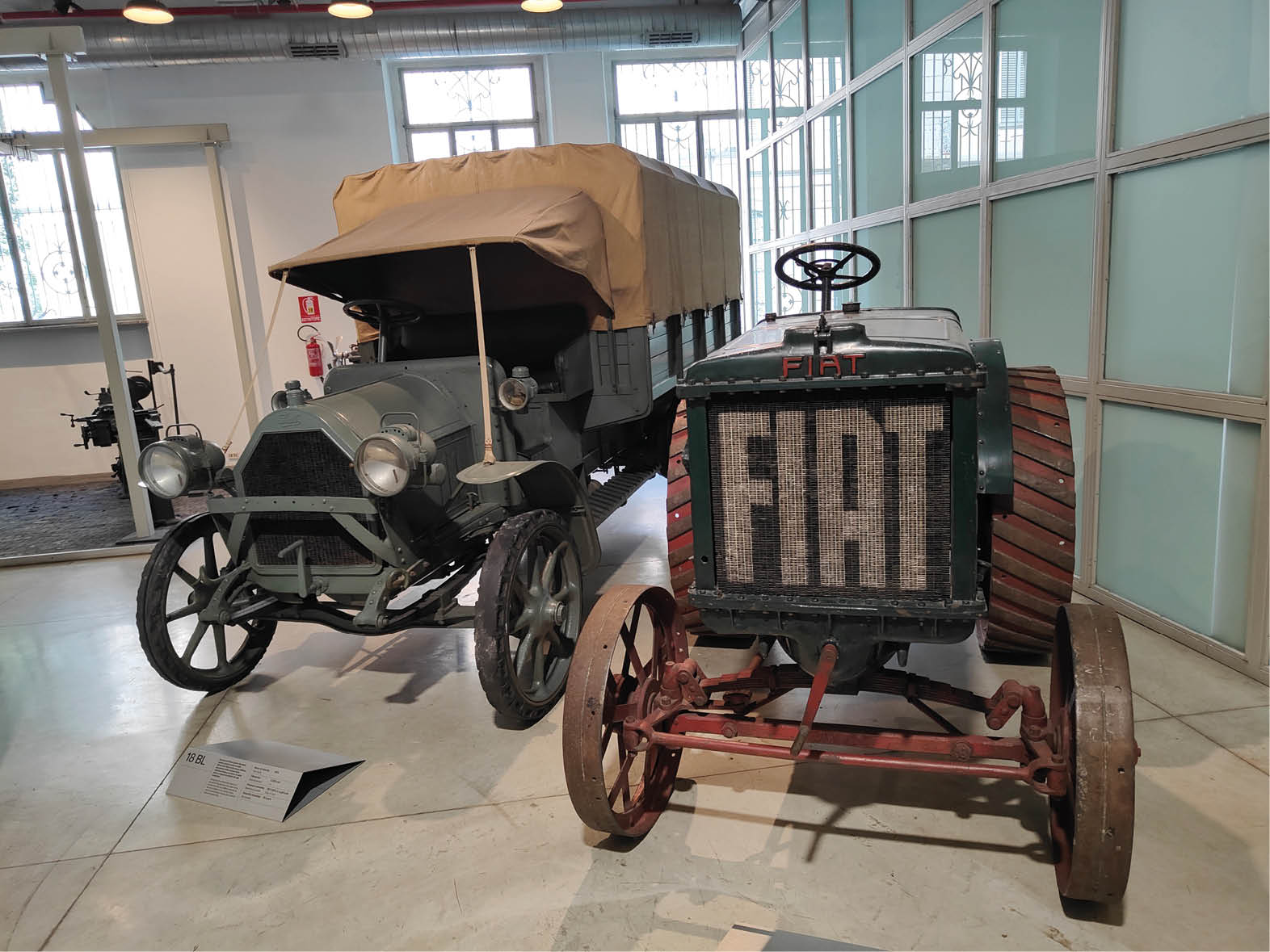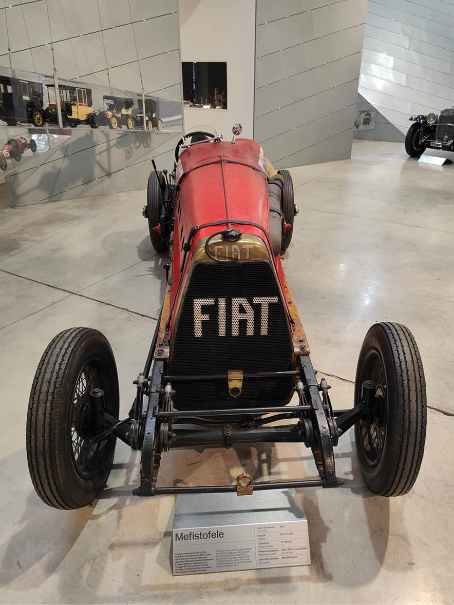 Jeszcze niedawno trudno było trafić na otwarte drzwi Centro Storico Fiat, jednak od jakiegoś już czasu obiekt ten funkcjonuje jako regularne muzeum, organizacyjnie związane z turyńskim Museo Nazionale dell’Automobile. Ekspozycję otwierają najstarszy zachowany ciągnik rolniczy Fiat 702 oraz ciężarówka Fiat 18BL z okresu I wojny światowej, a w holu wejściowym natrafiamy na model 3 1/2 HP z 1899 r., jeden z dwóch zachowanych na świecie. Tuż za rogiem czai się iście diabelska maszyna w postaci rekordowego Eldridge’a Mefistofelesa z 1923 r., który pluł ogniem i łomotał potężnym lotniczym silnikiem Fiat SB4 o pojemności 21,7 l.