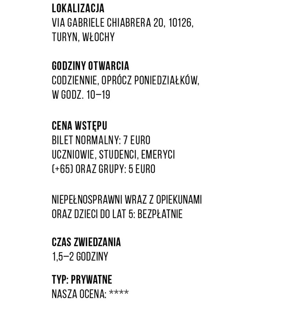 Zapewne większość przybyłych zacznie swoją wizytę od odwiedzenia legendarnej fabryki Fiata Lingotto, niezwykłej urody kompleksu budynków tworzących niegdyś największą fabrykę samochodów na świecie. Dziś ta wspaniała świątynia przemysłu ze swoim torem testowym na dachu pełni funkcję centrum handlowego, konferencyjnego i kulturalnego. Klasycznych Fiatów musimy poszukać bliżej centrum miasta, w budynku w stylu art noveau zbudowanym w 1907 r., który był drugą, po warsztatach przy Corso Dante, siedzibą Fiata.