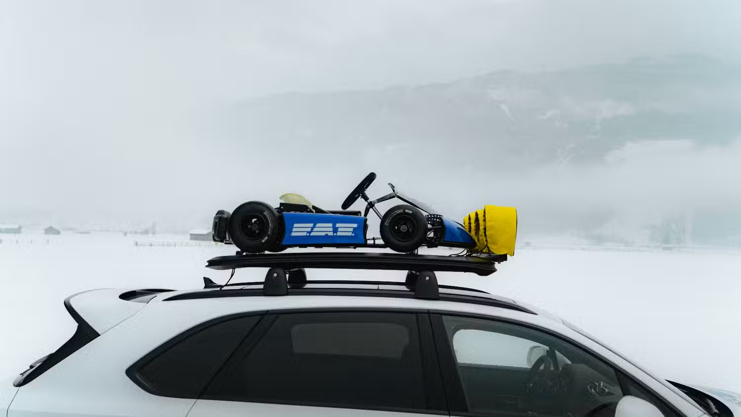 Bentayga X Concept wyróżnia się również wizualnie. Nadkola otrzymały czarne poszerzenia, które skrywają 22-calowe, kute felgi Brixton o wieloramiennym wzorze i białym wykończeniu. Na dachu zamontowano bagażnik z czterema reflektorami dalekosiężnymi, a dla podkreślenia jego pojemności – gokart w rozmiarze Bambino. To nie tylko efektowny detal, ale też nawiązanie do motorsportowych ambicji projektu.