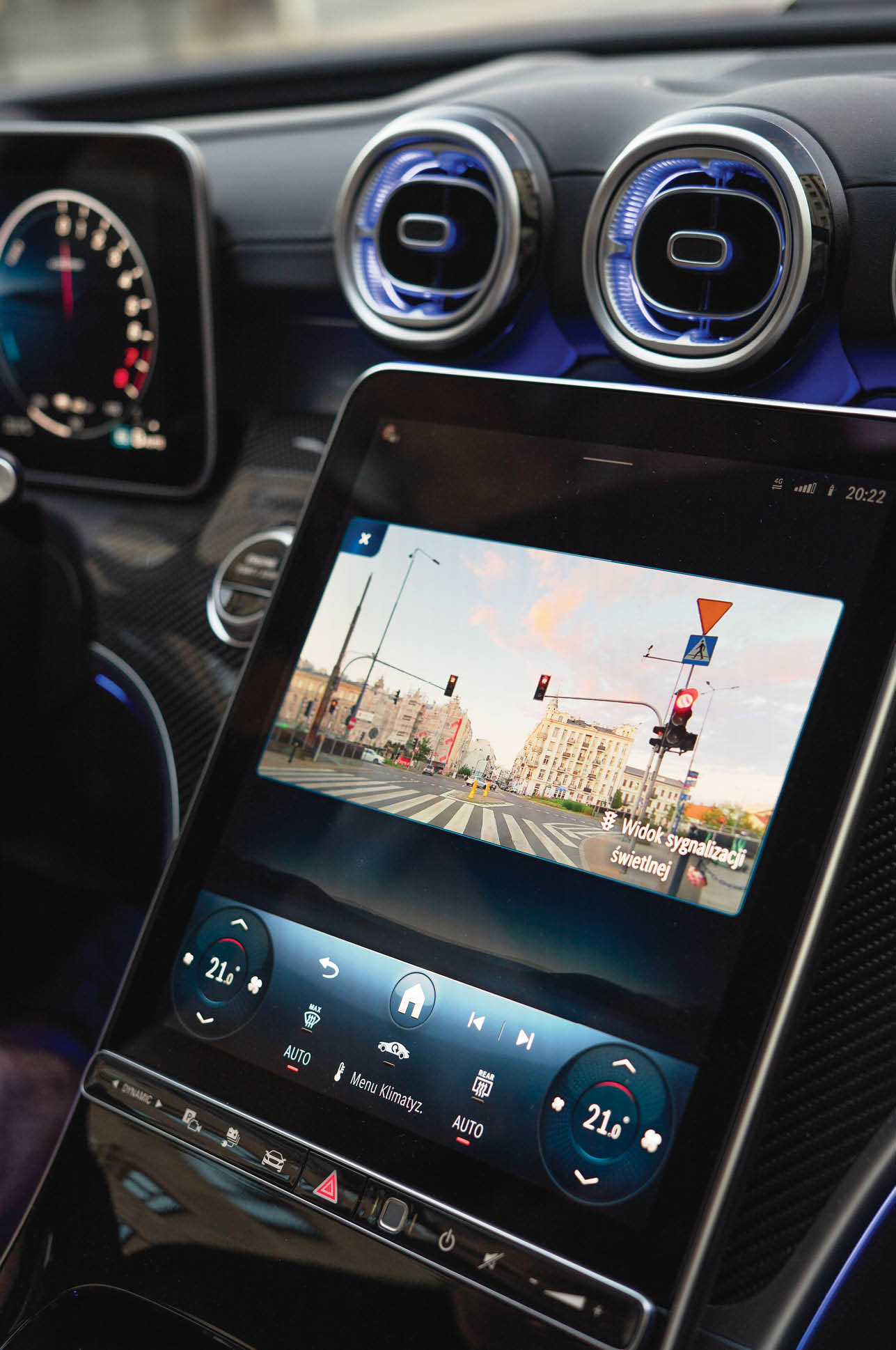 Siadasz w środku i od razu czujesz, że jesteś w Mercedesie. Fotele są szerokie, miękkie, regulowane elektrycznie w tylu płaszczyznach, że można się pogubić. Materiały – miękkie skóry, szczotkowane aluminium, tworzywa o wysokiej jakości – są na poziomie, którego można oczekiwać od tej marki. Ale największą gwiazdą (poza tą na grillu) jest system MBUX. Centralny ekran przypomina raczej tablet niż klasyczne radio. Jest intuicyjny, szybki i pełen bajerów: od realistycznej nawigacji 3D, przez sterowanie głosem, aż po funkcję „Hey Mercedes”, która czasem reaguje nawet wtedy, gdy rozmawiasz z pasażerem o czymś zupełnie innym. Do tego cyfrowe zegary, które możesz personalizować, jak chcesz – od klasycznych wskaźników po wykresy pracy hybrydy. Pakiet asystentów jest bogaty: aktywny tempomat, utrzymanie pasa, monitorowanie martwego pola, rozbudowany wyświetlacz przezierny, który jasno pokazuje, co aktualnie robi samochód. Na autostradzie odciąża to głowę i naprawdę podnosi komfort.