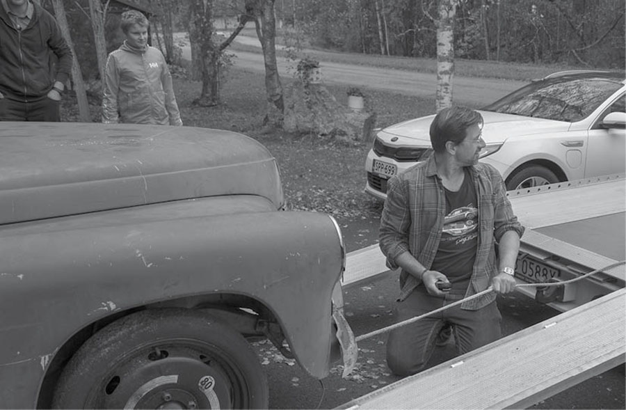 Wyobraźcie sobie zatem emocje, które towarzyszyły mi w chwili, gdy dowiedziałem się, że ów samochód nie przepadł w czeluściach historii i się odnalazł! Gdzie? W Finlandii! Wyobraźcie sobie ponadto euforię, gdy po kilkunastu godzinach jazdy lawetą zobaczyłem go na własne oczy. Jeżeli spodziewacie się, że stał w jakiejś starej stodole albo porzucony gdzieś na trawie, to nic bardziej mylnego. Ostatnie blisko 40 lat spędził w zaprojektowanym specjalnie dla niego garażu, otoczony narzędziami blacharskimi, giętarkami itp., zebranymi przez właściciela z myślą o renowacji, która doprowadziłaby tę Warszawę do stanu fabrycznego.