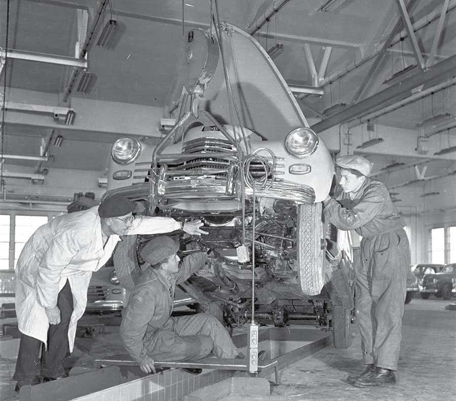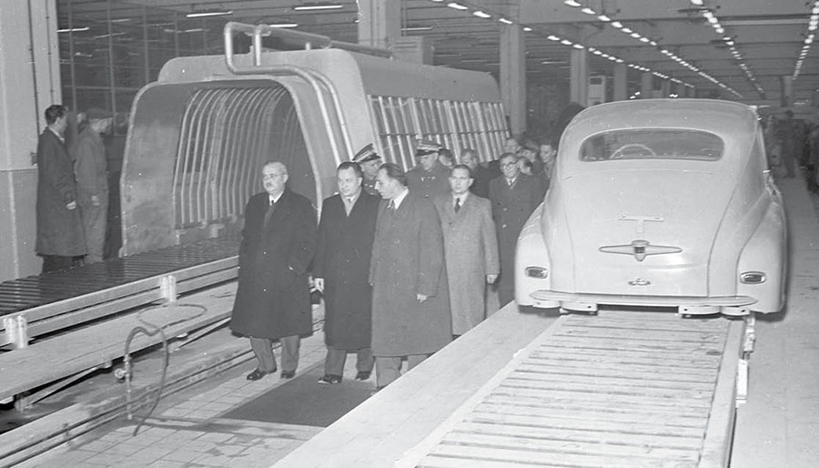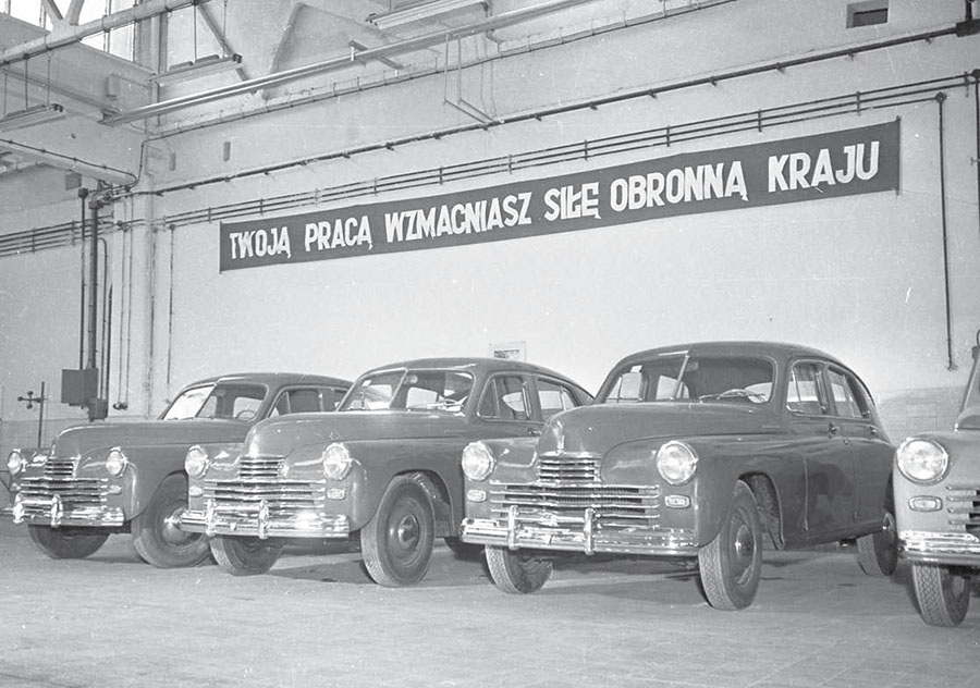 Historia nie przestaje nas fascynować – choć często wzbudza też kontrowersje – ponieważ nieustannie zaskakuje. Jedne fakty prostuje, inne – wręcz przeciwnie. Niektóre odkrycia pozwalają poznać jej pełniejszy, prawdziwy obraz dopiero po wielu latach. Tak jest w przypadku opowieści o pierwszym aucie wyprodukowanym w powojennej Polsce. I tu już pojawia się wstępne pytanie: czy to rzeczywiście samochód „made in Poland”? Bardziej ideologicznie niż w praktyce, bo poskładany polskimi rękoma z radzieckich części. Dostaliśmy go (czy raczej zapłaciliśmy grube miliony) w ramach bratniej pomocy ZSRR [artykuł red. Borowickiego o tym, czy Warszawa była bardziej ratunkiem, czy przekleństwem dla naszej motoryzacji, przeczytacie na stronie classicautomag.pl – przyp. red.]. Budowę przyszłej Fabryki Samochodów Osobowych rozpoczęto na pustych polach wsi Pelcowizna pod koniec 1948 r., jeszcze pod okiem Włochów z Fiata, z którym rząd PRL podpisał kontrakt. Od tej pory tę lokalizację namiętnie, ale geograficznie błędnie, podciągano pod sąsiedni Żerań. Roboty zamarły po zerwaniu mariażu z Fiatem, wymuszonym przez półtoraroczne naciski z Moskwy. FSO formalnie otwarto 17 stycznia 1950 r. już jako przyszłe miejsce powstawania modelu na licencji GAZ-a M20 Pobiedy. Hala nr 1 (narzędziownia, wydział remontowy, produkcja elementów znormalizowanych) była gotowa już w lipcu 1950 r., a hala nr 2 – w lutym 1951 r. Hale nr 3 i 4, dodatkowe w stosunku do planu włoskiego, otwarto po długim czasie od rozpoczęcia produkcji. Już w październiku 1950 r. Sowieci przekazali nam pełną dokumentację Pobiedy M20 w wersji trzeciej, czyli z poprawkami, które miały dopiero wejść do produkcji. Dokumenty trafiły do Biura Konstrukcyjno-Badawczego FSO, w którym przetłumaczono je na język polski i dostosowano do naszej specyfiki. Latem 1951 r. powstało Biuro Głównego Konstruktora FSO. Pierwszym szefem został inż. Karol Pionnier, którego zespół najpierw adaptował radzieckie modyfikacje na nasze potrzeby, a później wypracowywał własne pomysły. Nazwę „Warszawa” wybrali w plebiscycie pracownicy FSO.
