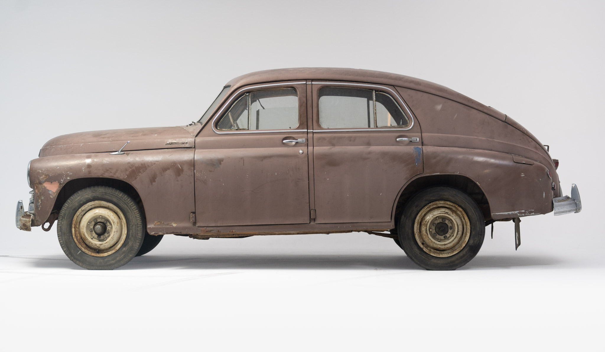 Efekty przyniosła dopiero operacja Patryka Mikiciuka, o której szerzej opowiada on w tekście poprzedzającym ten artykuł i na swoim kanale na YouTube. Po miesiącach rozmów, korespondencji i liczącej 1000 km wyprawie na północ, po trwającej blisko 72 lata rozłące, Warszawa nr 000001 wróciła do Polski. Serce mocno bije, gdy widzimy ją po raz pierwszy w studiu na naszej sesji zdjęciowej. W fińskich rękach miała wiele szczęścia i przetrwała do dziś w dobrym, w dużej mierze oryginalnym stanie. Widać na niej ślady wielu lat eksploatacji i napraw, także blacharskich, z użyciem nowszych części. Zastałe zawiasy donośnie skrzypią i trzeszczą przy otwieraniu. We wnękach drzwi i na desce rozdzielczej zachował się oryginalny czekoladowy lakier. A zatem na historycznych zdjęciach i w kronice filmowej z uroczystości uruchomienia produkcji jako główna gwiazda wystąpiła któraś z jej sióstr w jasnoszarozielonym kolorze, wypadająca korzystniej na czarno-białej kliszy. Przez tyle lat żyliśmy w błędzie nawet pomimo historycznych źródeł (a właściwie to przez nie!). Oceny oryginalności wozu podjął się dla nas warszawski ekspert-pasjonat Tomasz Sternicki, który zresztą przyznaje, że tej najwcześniejszej Warszawy też szukał od zawsze. Po oględzinach stwierdził, że skorupa nadwozia jest radzieckiej produkcji. Pewne detale pozwalają łatwo i bez wątpienia odróżnić produkty blacharni w Gorkim od tej na Żeraniu. Również numer nadwozia seryjnej ramy przeznaczonej do Pobiedy, nabity w cynie na podszybiu, zgadza się z serią numerów fabryki GAZ z IV kwartału 1951 r. (radziecka numeracja obowiązywała do 1954 r., gdy wykonano pierwsze nadwozie wyłącznie z polskich wytłoczek). Oryginalne są: lewy przedni błotnik, drzwi, szyby i tapicerka. Wymieniona została pokrywa bagażnika – od środka ma czytelną pieczątkę, datującą na rok 1956.