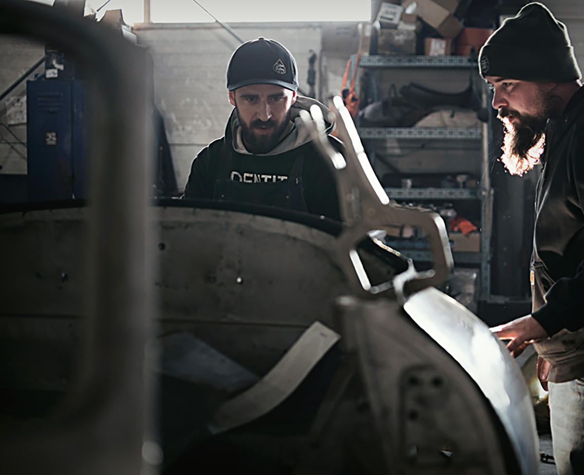 Jaką zatem metodę przyjąć w trakcie remontu? Szukać gotowych zamienników, które są drogie, ale za to nie bardzo pasują, czy zlecić dorobienie? Najlepiej pozwolić zdecydować Jakubowi, ponieważ wybór wcale nie jest oczywisty. Przede wszystkim konieczna jest wiedza, który producent i do jakiego pojazdu robi sensowne reperaturki. Niektóre z nich da się przerobić, by pasowały jak fabryczne elementy. Jednak jeżeli komuś zależy na jakości, powinien wybrać ręczną robotę. Dobrym przykładem jest Porsche 356. „Za byle kawałek blachy wyoblony na kole angielskim i postukany trochę młotkiem” trzeba płacić krocie, a dla wprawnego rzemieślnika dorobienie ich nie stanowi żadnego problemu. Jak mówi Jakub, takich warsztatów jak jego i Marcina Gajdy, z którym dzieli halę i fascynację blacharstwem, wciąż jest niewiele, ale warto szukać.