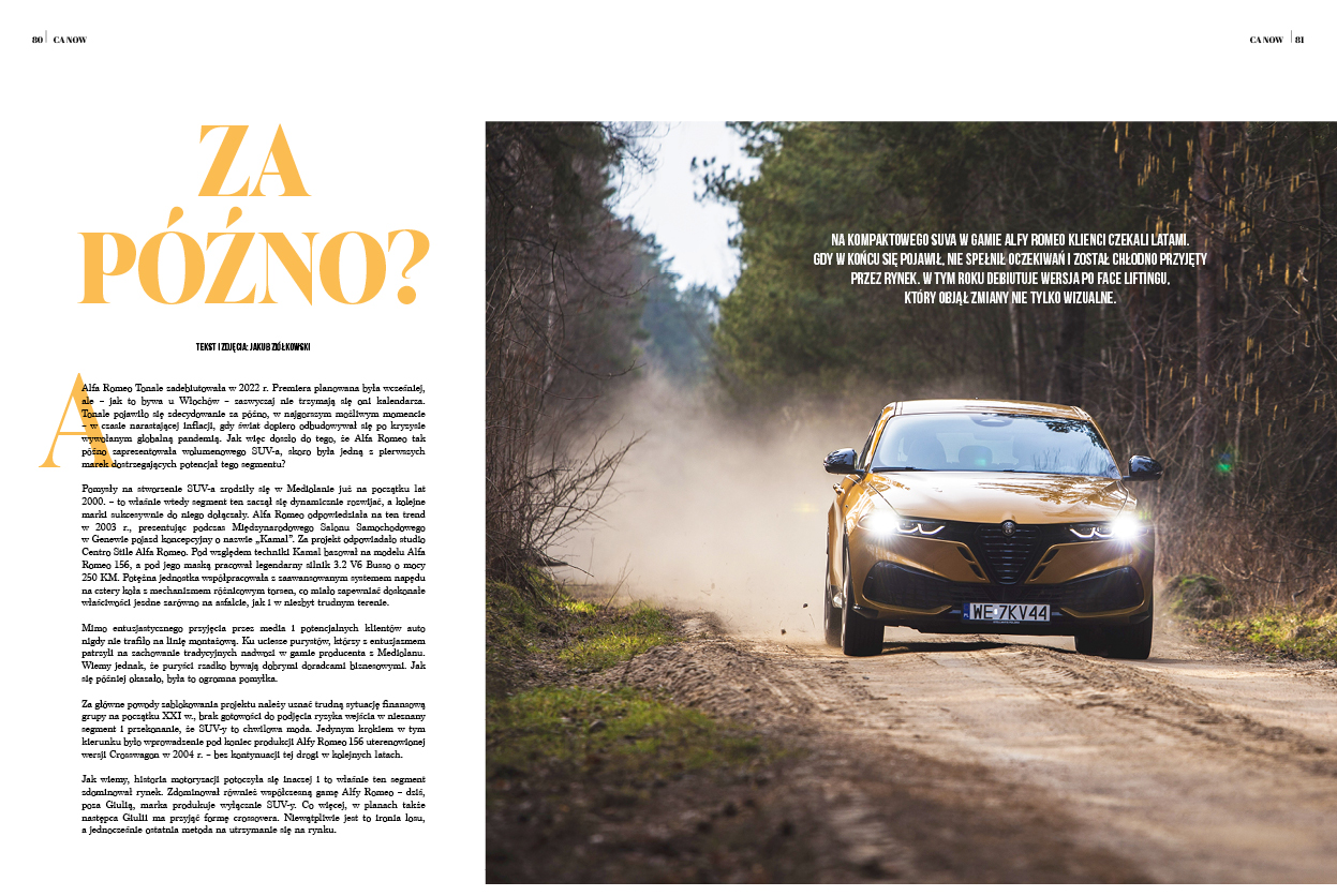 W „CA Now” przedstawiamy Alfę Romeo Tonale i Jeepa Compassa – dwa auta blisko spokrewnione technicznie, ale zbudowane na zupełnie innych emocjach. To dobry przykład na to, że nawet dziś charakter samochodu wciąż rodzi się z detali.