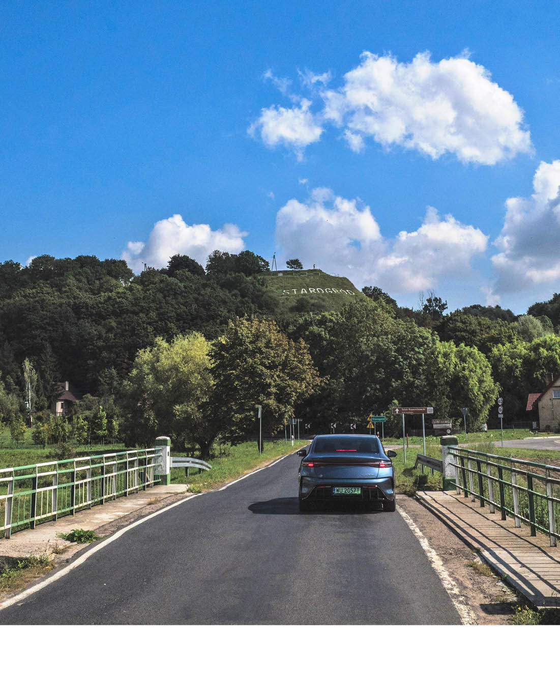 Kolejny odcinek z pozoru jest nudny i prowadzi dnem doliny. Mijamy Kokocko, słynące przed laty z imprez techno i młodych ludzi z gwizdkami oraz białymi rękawiczkami, aż docieramy do miejscowości Borówno, w której przy wale przeciwpowodziowym znajduje się punkt widokowy. Wisła w tym miejscu lubi wylewać, a woda w okresach wzmożonych opadów potrafi podchodzić pod sam wał. Powoli opuszczamy dolinę i ruszamy w stronę zbocza. Z daleka zaczyna majaczyć wielki napis. To nie Hollywood – to Starogród. Zbliżamy się do krótkiej serii zakrętów, które zdradzają, że prowadzony przez nas samochód jest bardzo komfortowy. Mocy nie brakuje (w końcu ma 313 KM), ale szybkich zakrętów nie lubi. Niski środek ciężkości to za mało – ten model nie jest do tego stworzony. Przynajmniej w wersji, którą jedziemy. Seal ma również wariant Excellence AWD – może on poradziłby sobie lepiej. Tak czy inaczej, jest to wygodny środek transportu.